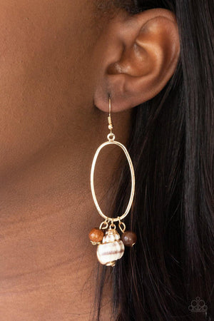 Golden Grotto Brown and Gold Shell Earrings - Paparazzi Accessories