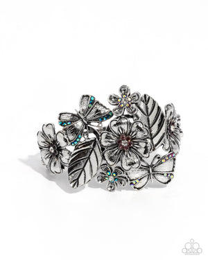 Harmonious Heiress Purple & Silver Butterfly Floral Cuff Bracelet - Paparazzi Accessories
