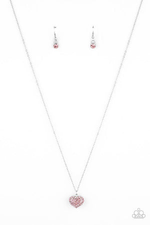 Heart-Warming Glow Pink Rhinestone Heart Necklace - Paparazzi Accessories