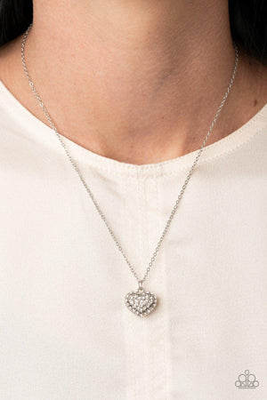 Heart-Warming Glow White Rhinestone Heart Necklace - Paparazzi Accessories
