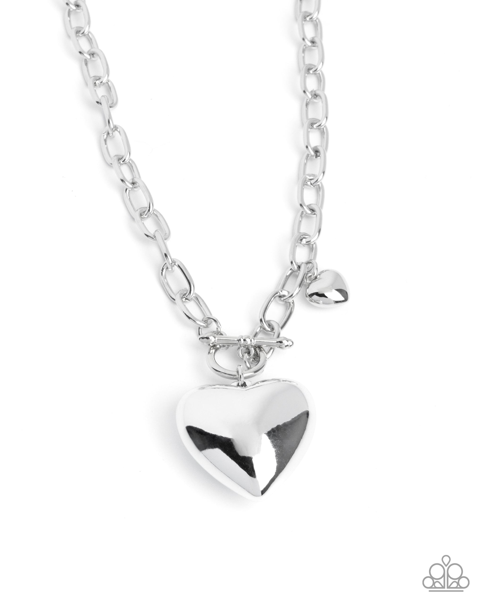 Heartfelt Hangout Silver Heart Necklace - Paparazzi Accessories