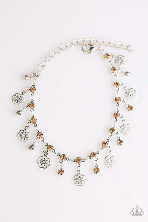 Hibiscus Breeze Brown Rhinestone Bracelet - Paparazzi Accessories
