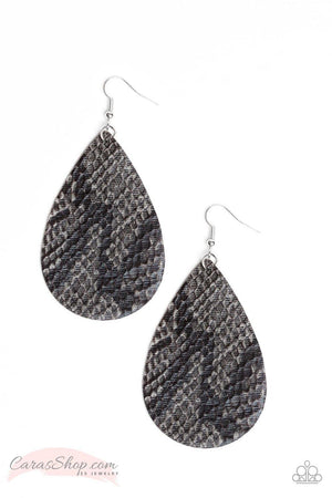 Hiss, Hiss Silver Leather Animal Print Earrings - Paparazzi Accessories