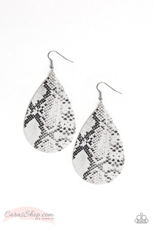 Hiss, Hiss White Leather Animal Print Earrings - Paparazzi Accessories