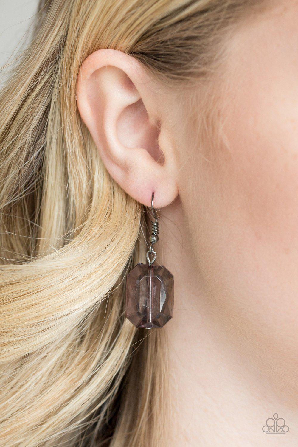 Ice Bank Black Acrylic Necklace and matching Earrings - Paparazzi Accessories
