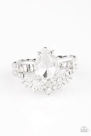 If The Crown Fits White Rhinestone Ring - Paparazzi Accessories