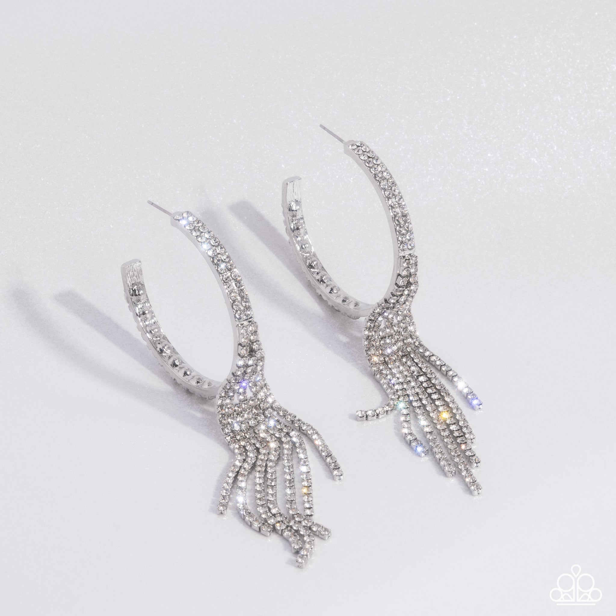 Jaw-Dropping Jubilee White Rhinestone Hoop Earrings - Paparazzi Accessories