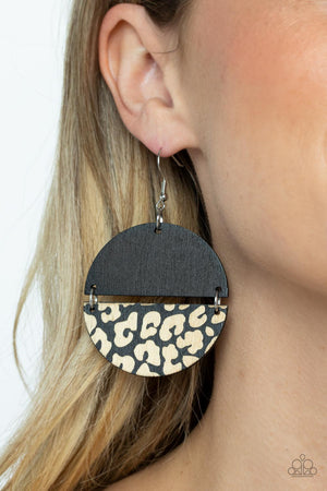 Jungle Catwalk Black Wood Cheetah Print Earrings - Paparazzi Accessories