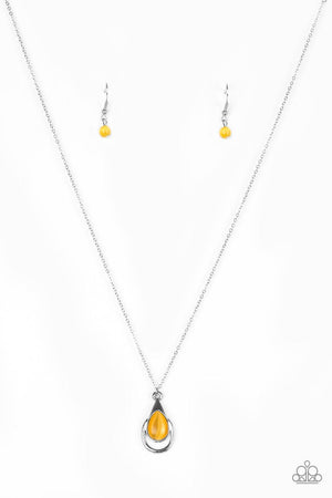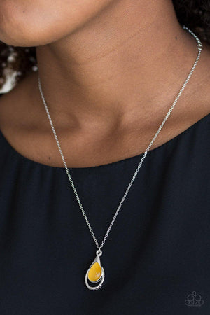 Just Drop It Silver and Yellow Moonstone Teardrop Necklace - Paparazzi Accessories