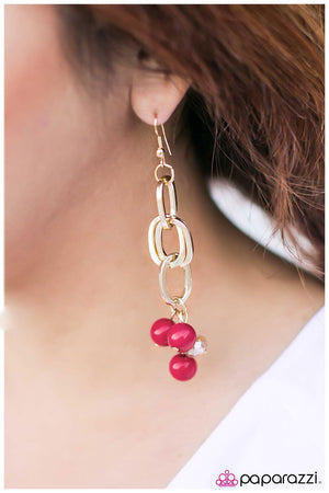 Just My Luck Pink and Gold Chain Earrings - Paparazzi Accessories