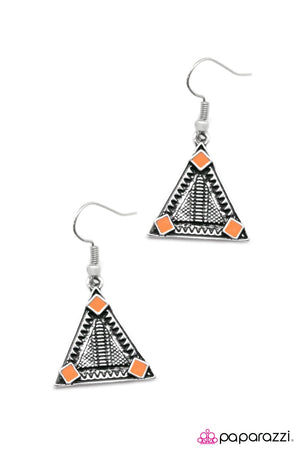 Knights Over Egypt Orange and Silver Earrings - Paparazzi Accessories
