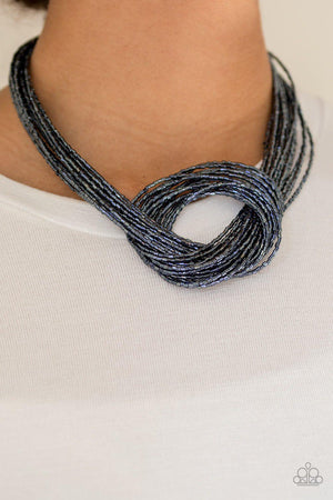 Knotted Knockout Metallic Blue Seed Bead Necklace and matching Earrings - Paparazzi Accessories