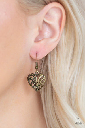 Love Lockets Brass Heart Necklace and matching Earrings - Paparazzi Accessories