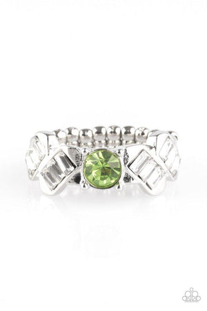 Luxury Loot White and Green Rhinestone Ring - Paparazzi Accessories