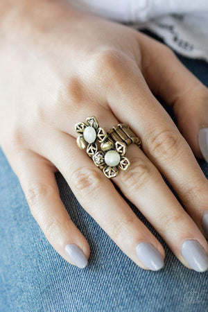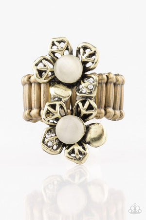 Magnolia Mansions Brass and White Moonstone Flower Ring - Paparazzi Accessories