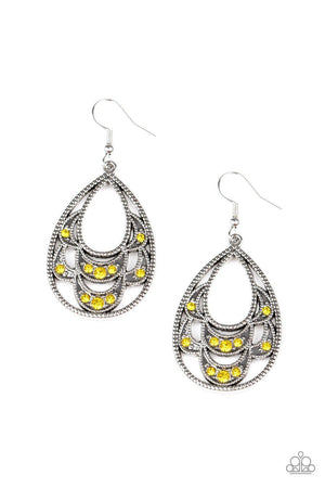 Malibu Macrame Yellow Rhinestone Teardrop Earrings - Paparazzi Accessories