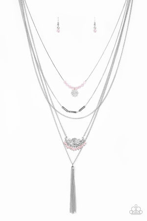Malibu Mixer Pink and Silver Tassel Necklace - Paparazzi Accessories