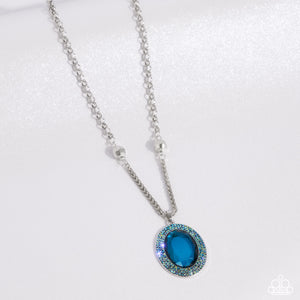 Manufactured Majesty Blue & Iridescent Rhinestone Necklace - Paparazzi Accessories