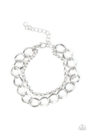 Material Girl White Rhinestone and Chain Bracelet - Paparazzi Accessories