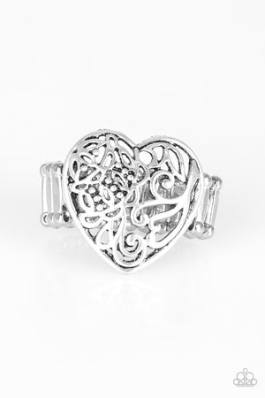 Meet Your Matchmaker Silver Filigree Heart Ring - Paparazzi Accessories