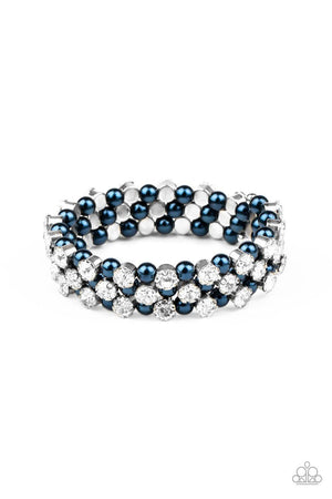 Metro Motif Blue Pearl and White Rhinestone Wire Wrap Bracelet - Paparazzi Accessories