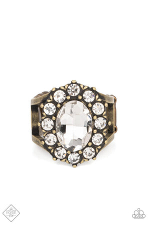 Moxie Magic Brass & White Rhinestone Ring - Paparazzi Accessories