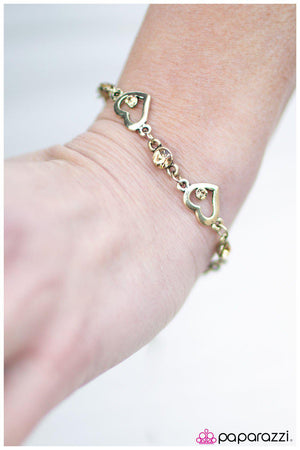 My Heart Will Go On Brass and Rhinestone Heart Bracelet - Paparazzi Accessories