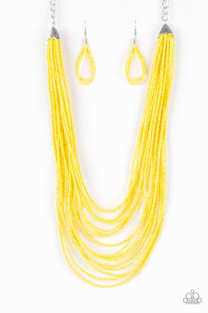 Peacefully Pacific Yellow Seed Bead Necklace and matching Earrings - Paparazzi Accessories