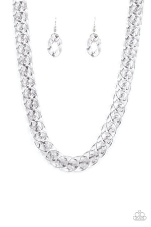 Put it on Ice Silver Acrylic Necklace and matching Earrings - Paparazzi Accessories