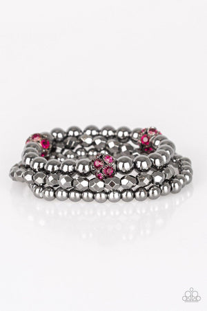 Noticeably Noir Pink Rhinestone and Gunmetal Bracelet Set - Paparazzi Accessories