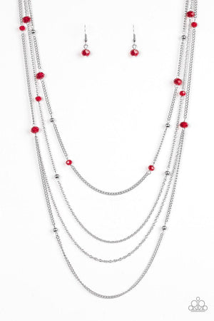 On The Front Shine Long Red and Silver Necklace - Paparazzi Accessories