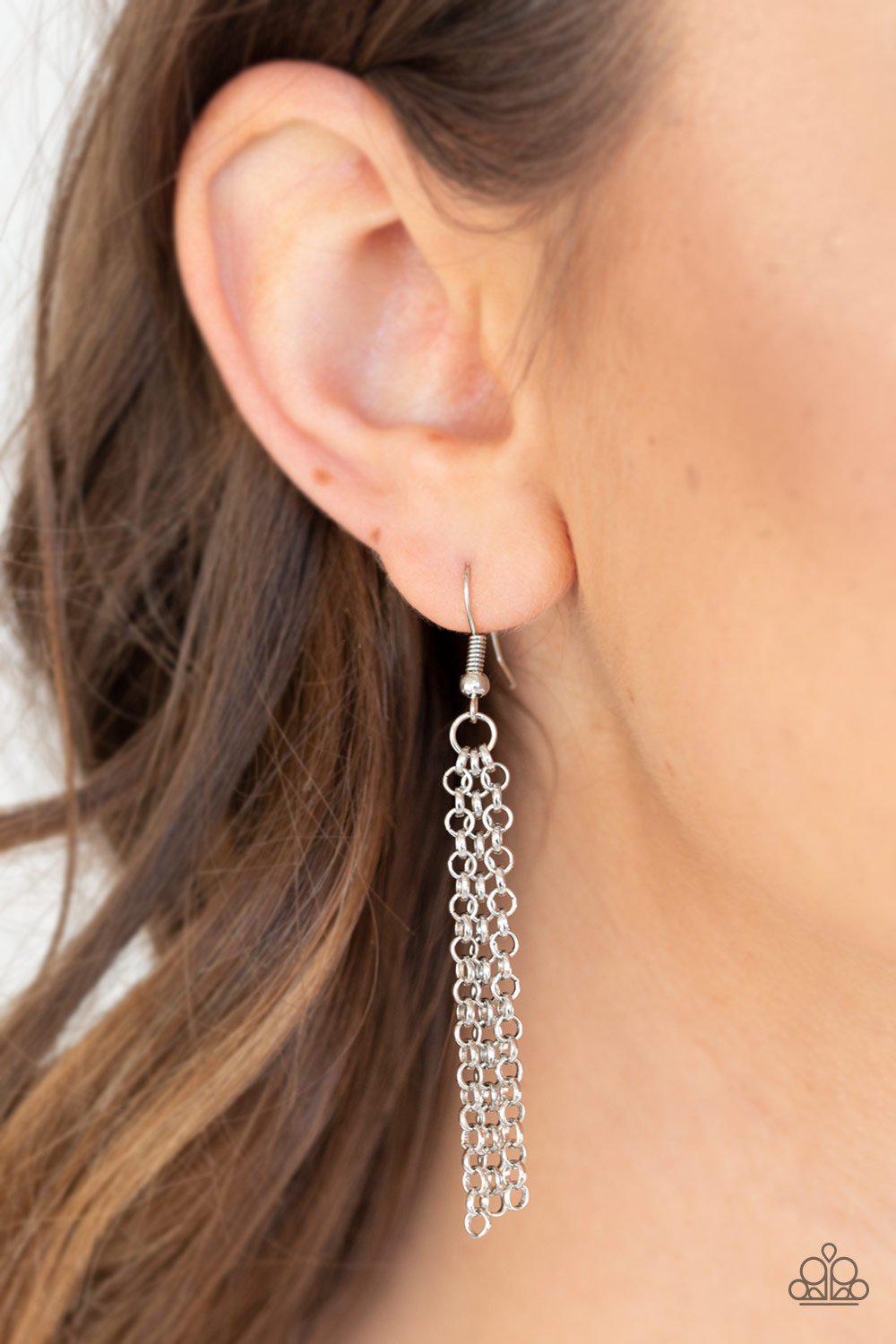 As if chipped off a cliff, pieces of black, brown, and white rock link at the bottom of a lengthened silver chain for an earthy look. As the stone elements in this piece are natural, some color variation is normal. Features an adjustable clasp closure.