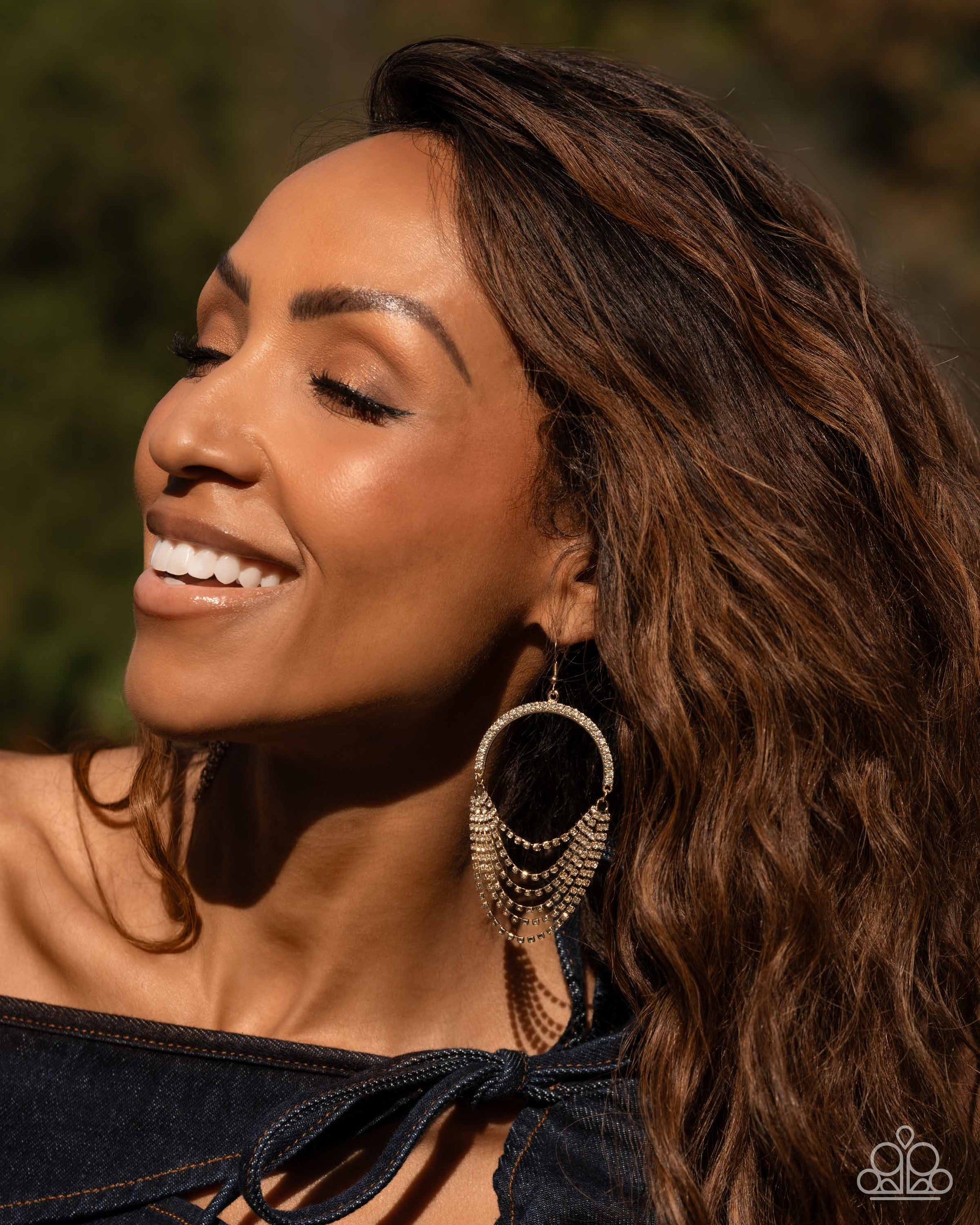 Ostentatious Opulence Gold & White Rhinestone Earrings - Paparazzi Accessories