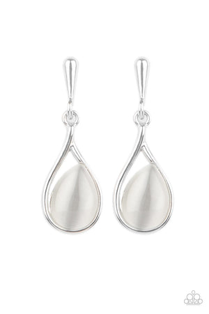 Pampered Glow Up White Cat's Eye Stone Earrings - Paparazzi Accessories