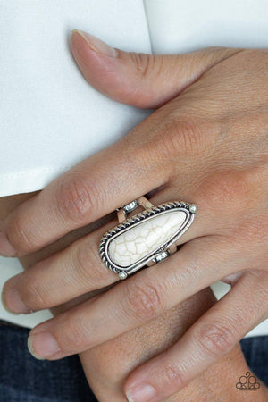 Pioneer Plains White Stone and Silver Ring - Paparazzi Accessories