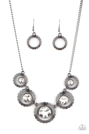 PIXEL Perfect Gunmetal Black and White Rhinestone Necklace - Paparazzi Accessories