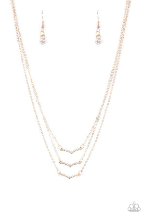 Pretty Petite Rose Gold and White Rhinestone Necklace - Paparazzi Accessories