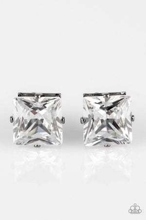 Prima Donna Drama Gunmetal Black and White Rhinestone Post Earrings - Paparazzi Accessories