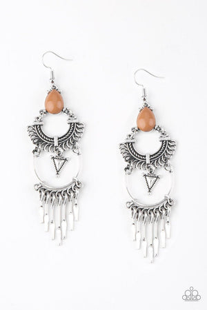Progressively Pioneer Silver and Brown Earrings - Paparazzi Accessories