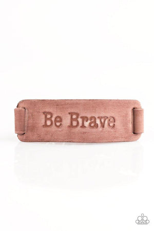 Put On A Brave Face Brown Leather Urban Wrap Snap Bracelet - Paparazzi Accessories