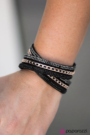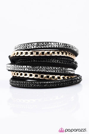 Put On Your Game Face Black and Gold Urban Double-wrap Snap Bracelet - Paparazzi Accessories