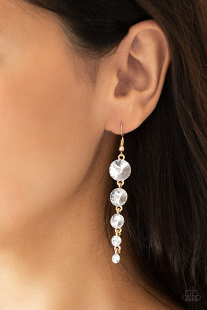 Raining Rhinestones Gold and White Gem Earrings - Paparazzi Accessories