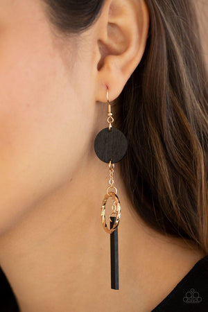 Raw Refinement Black Wood and Gold Earrings - Paparazzi Accessories