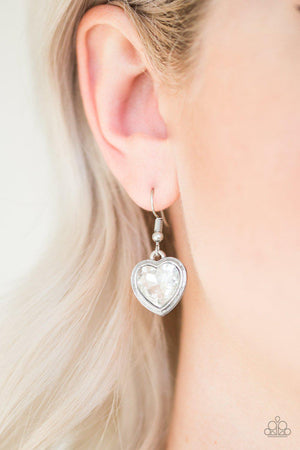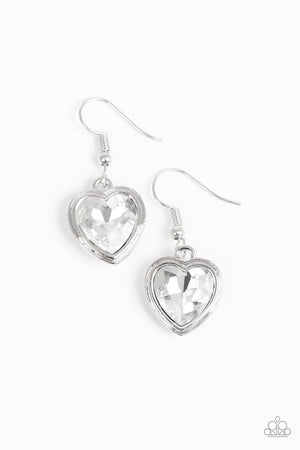 Real Romance White Rhinestone Heart Earrings - Paparazzi Accessories