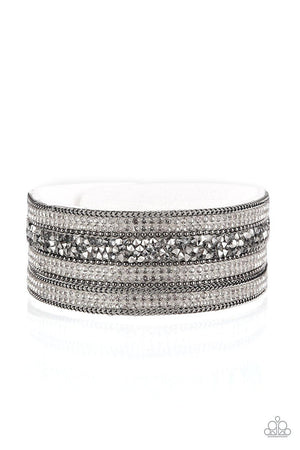Really Rock Band White and Gunmetal Urban Wrap Snap Bracelet - Paparazzi Accessories