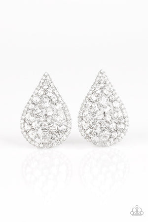 REIGN Storm White Rhinestone Teardrop Post Earrings - Paparazzi Accessories