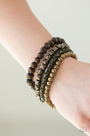 Retro Rocker Brass and Wood Bead Bracelet Set - Paparazzi Accessories
