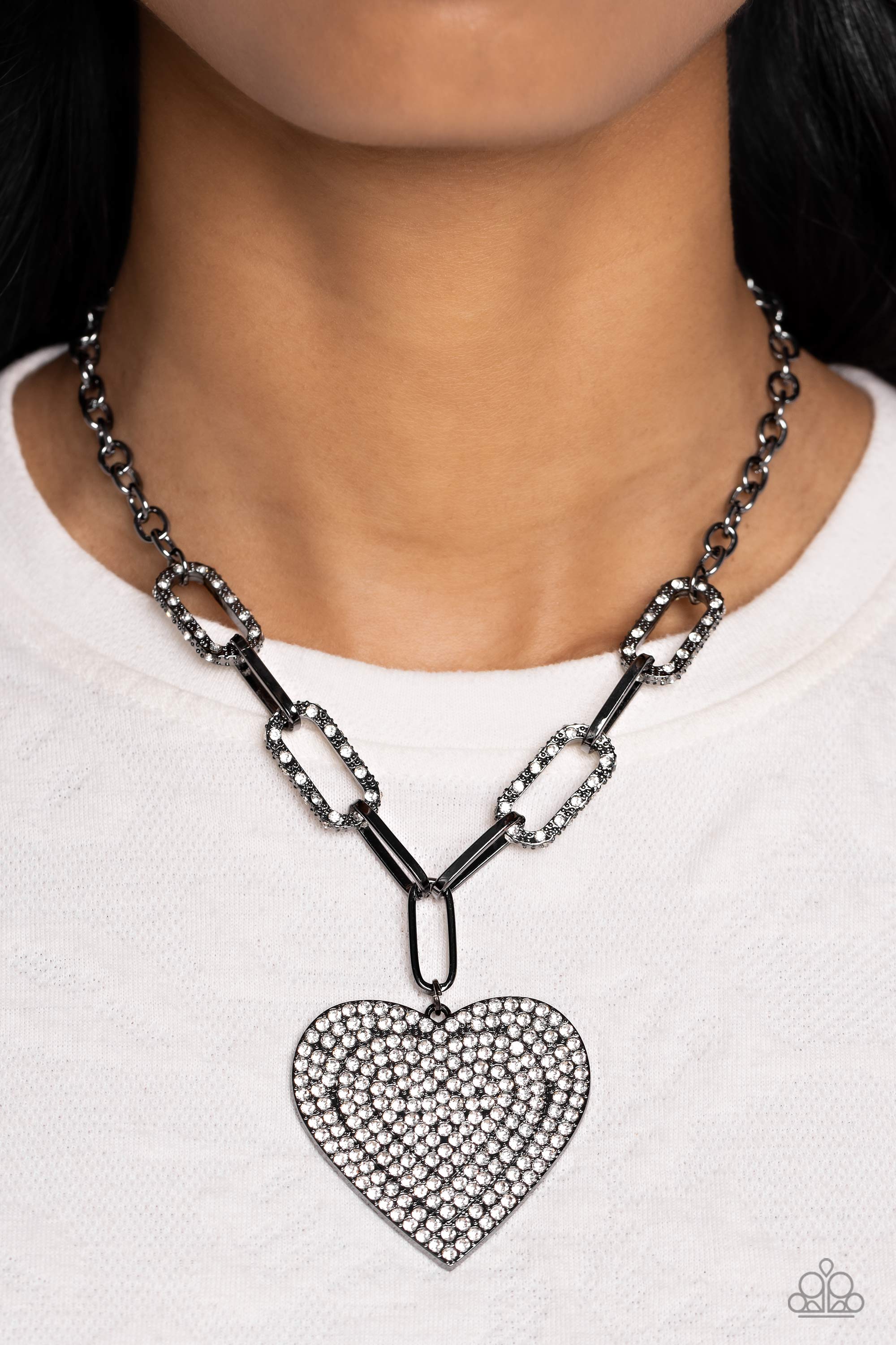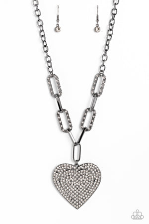 Roadside Romance Gunmetal Black & White Rhinestone Heart Necklace - Paparazzi Accessories