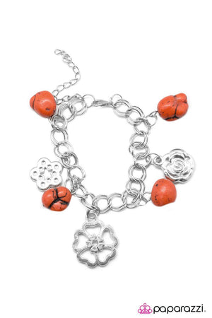 Rock Garden Silver and Orange Stone Bracelet - Paparazzi Accessories