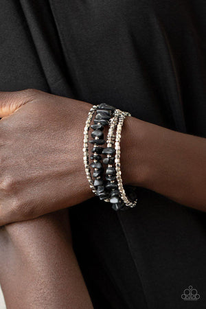 Rockin Renegade Black Stone and Silver Infinity Wrap Bracelet - Paparazzi Accessories